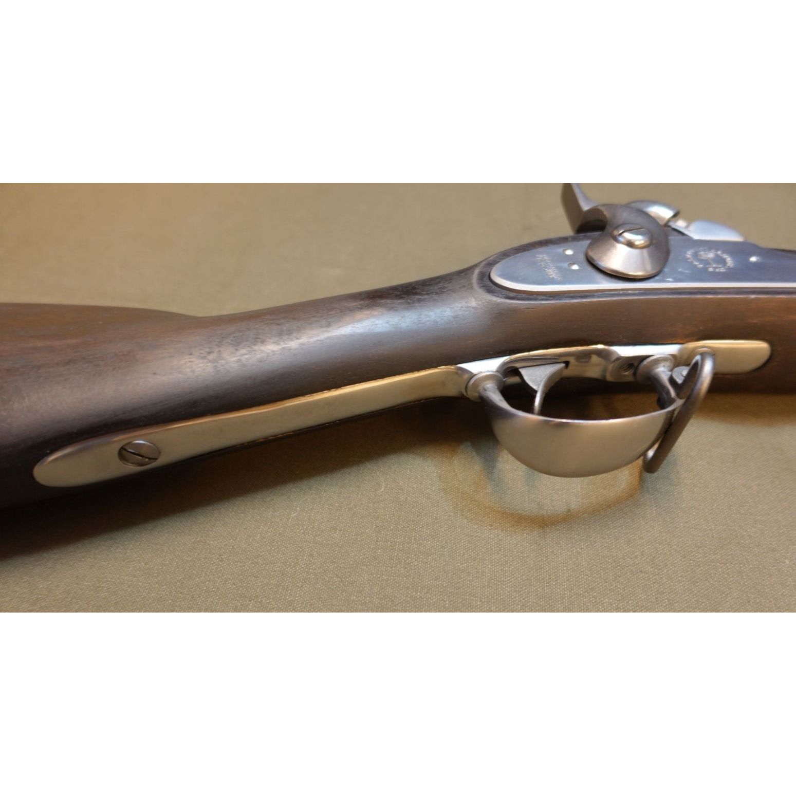 This is a JRA reproduction of the South Carolina Palmetto musket. The musket has brass bands and is correctly marked faithful to the original. South Carolina state armory built only a few thousand of these muskets in the 1850s and when the Civil War started they were virtually all issued to the State Militia. Very few examples survived the war and as such are highly desirable, rare and expensive musket. 69 caliber smoothbore this model is N-SSA approved.