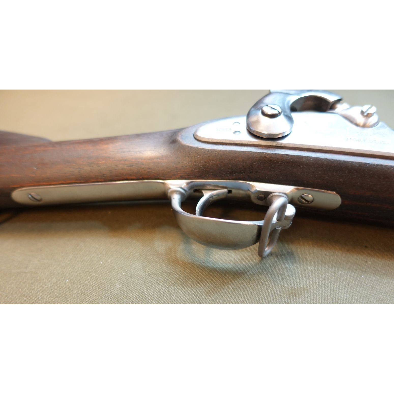 The Richmond Armory converted vast stocks of captured arms into cavalry carbines and mounted infantry rifles. This is the 25” barrel version of the carbine. Built from an original 1861 to the exact dimensions of of the original carbine. Barrel has a Hoyt 1-56 7 groove liner and has proven to be one of the most accurate muzzle loading carbines available. N-SSA approved for carbine match. The right side of the buttstock has the original owners name imprinted with small tacks. This is typical of southern used arms.