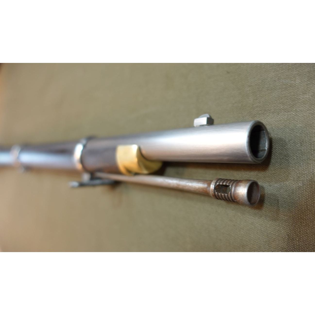 This is a used Euroarms P53 Enfield. We have rebuilt this with our “defarb” process. Stock has been correctly reshaped and finished in a traditional oil finish. Lower and middle bands have been replaced with the correct style. The lock screw eschutchens have been replaced with the correct style. The sling swivels have been replaced with original parts. A new lock plate which is correctly marked has been added. The bore on this musket is good, however there is some roughness in the breach area. Musket has had the barrel and bands polished as this was typical of Civil War service for uniformity with the issued Springfield muskets.